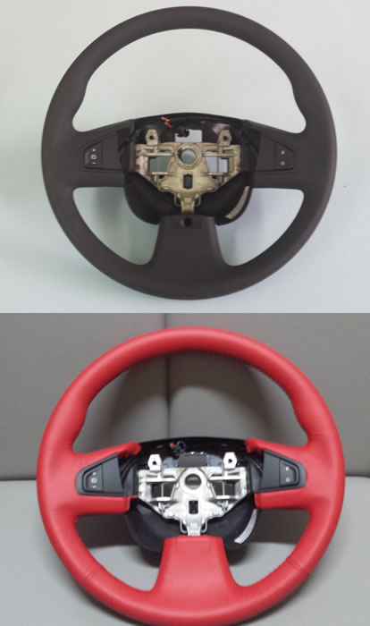 Obszywamy kierownice skórą oraz uzupełniamy ubytki. Wykonujemy nowe mieszki i obszywany skórą gałki skrzyni biegów.